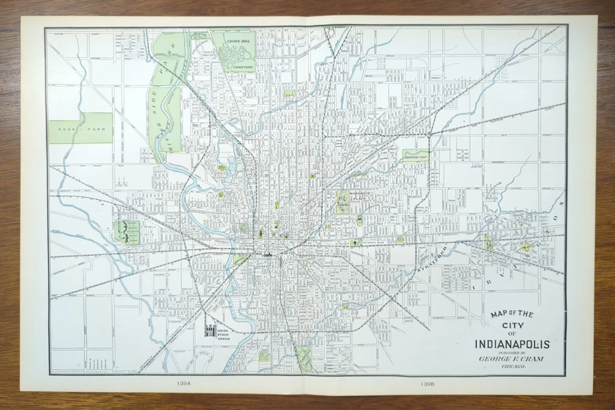 Vintage 1903 INDIANAPOLIS INDIANA Map 22″x14″ Old Antique Original