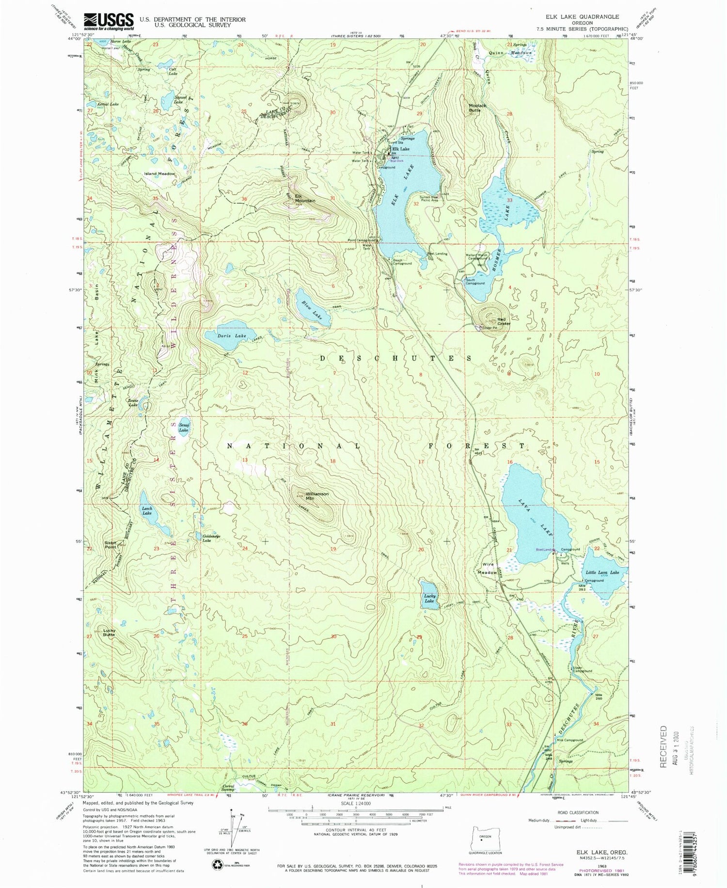 Classic USGS Elk Lake Oregon 7.5’x7.5′ Topo Map โ MyTopo Map Store