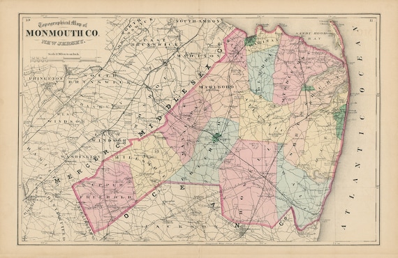 Village of FARMINGDALE, New Jersey 1873 Map Replica or Genuine