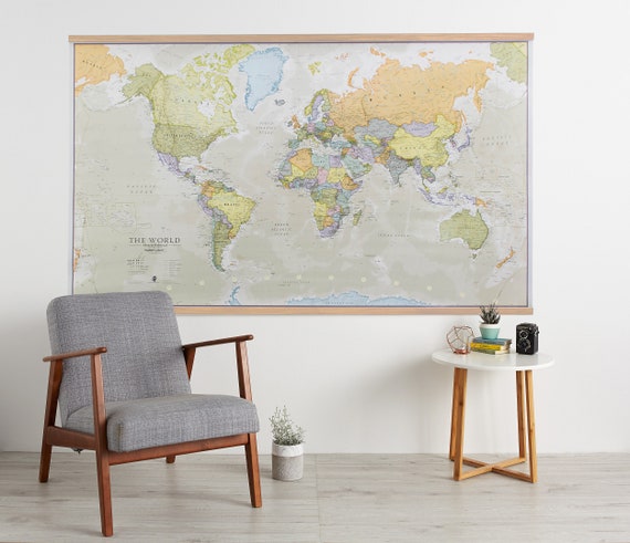 Huge Classic World Map Push Pin Map, Map, Home Decor, Living Room