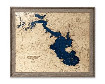 Lake Livingston Custom Wood Map 3D Wall Art Contour Map Lake House
