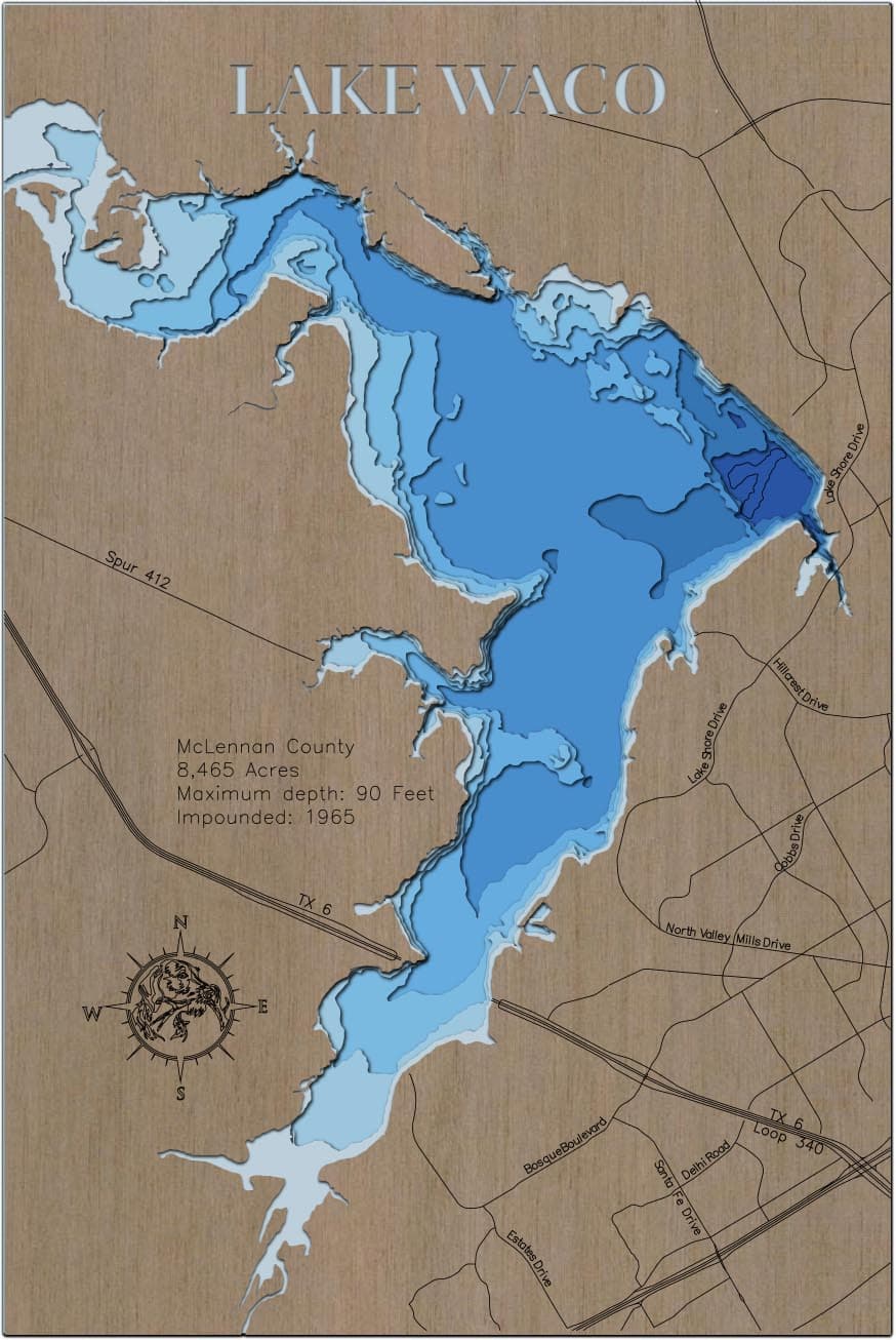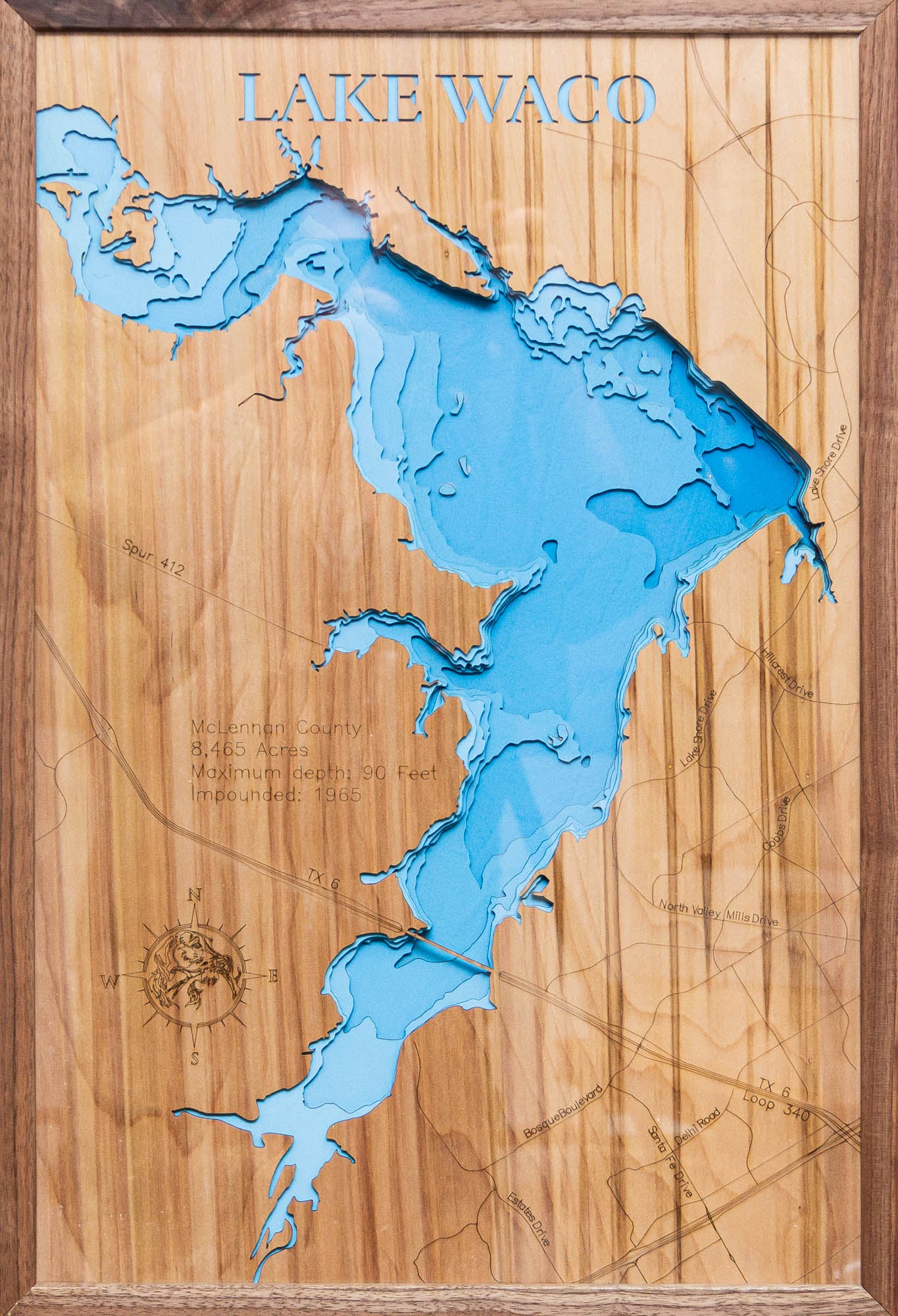 Lake Waco, Texas 3D Wooden Map | Topographic Wood Chart
