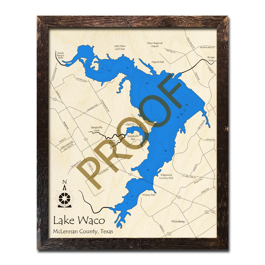 Lake Waco, Texas 3D Wooden Map | Topographic Wood Chart