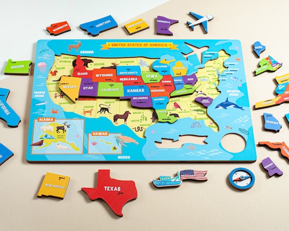 Wooden US Map With Animals, Classroom Decor, Teacher Gift, Wooden