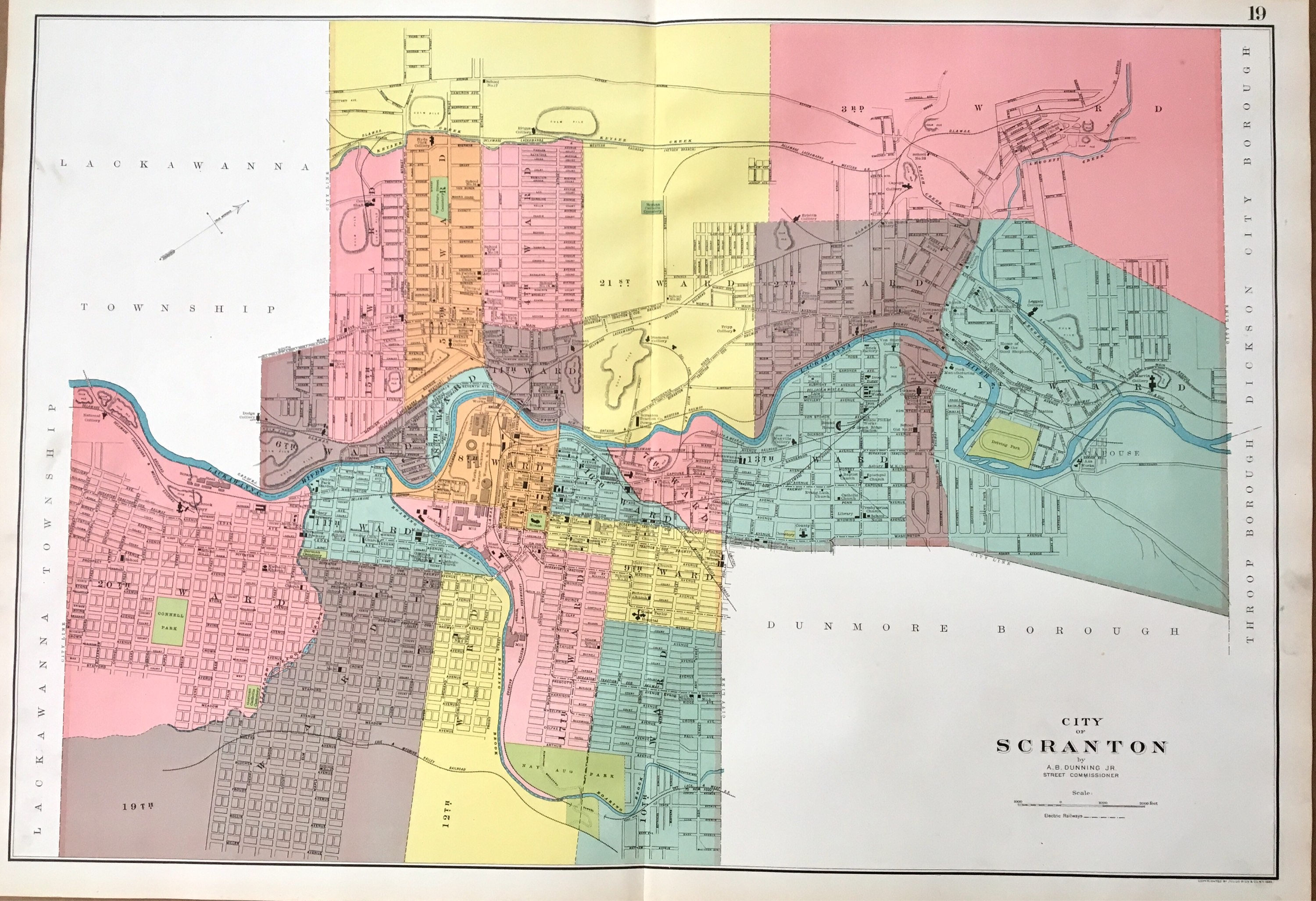 City of Scranton Map, Original 1900 State of Pennsylvania Atlas