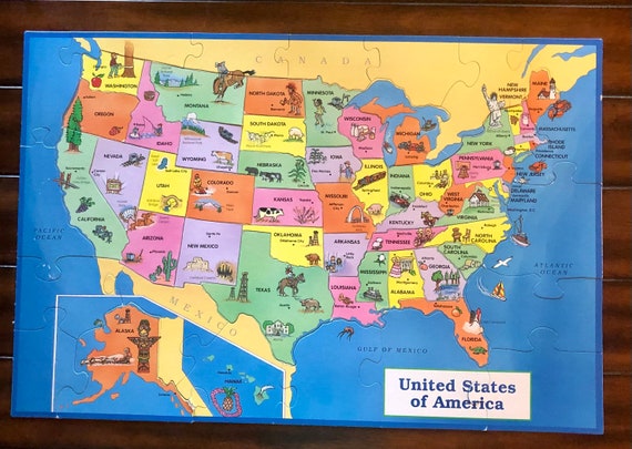 Vintage Wooden Playskool US Puzzle Map Free Ship Etsy | Map
