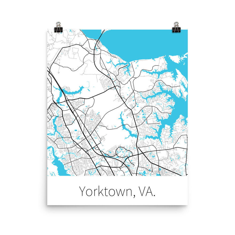 Yorktown, VA Map Wall Art on Poster, Framed Poster, and Canvas